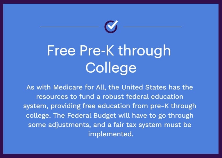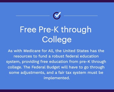One of the richest nations in the world should be able to prioritize the education of its students. Our kids should be provided with free education from preschool through public college, including trade schools.