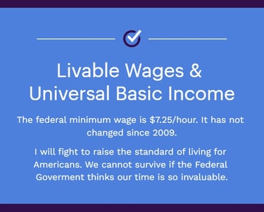 In addition to raising the minimum wage, I would also support a Universal Basic Income. Currently, Congresswoman Tlaib has introduced the Economic Dignity for All Agenda 3 which includes three Bills, tackling three aspects which affect the working class. The bills in this agenda are: