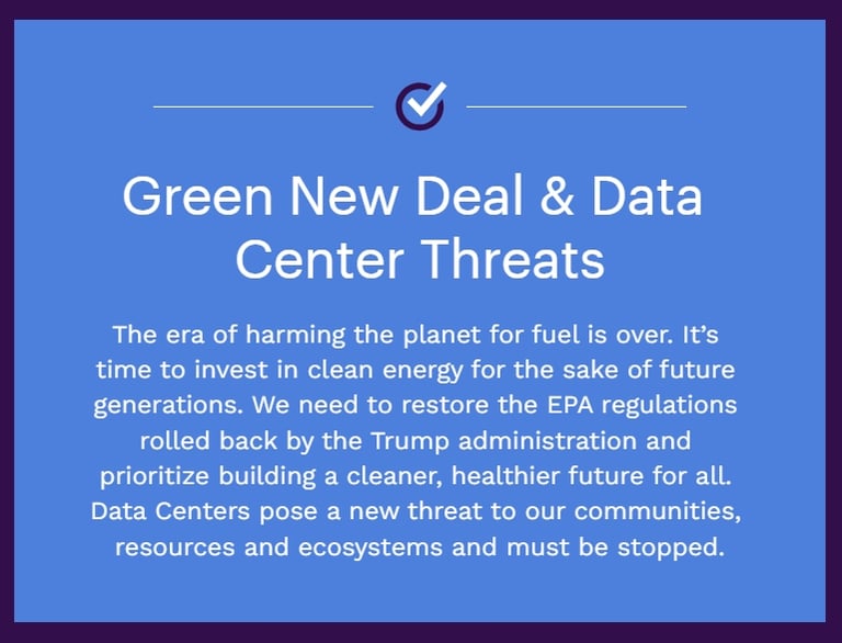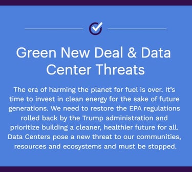 I am going to fight to re-establish green energy programs. I will fight also the construction of data centers as they pose a very real threat to the health of our families and our ecosystem.